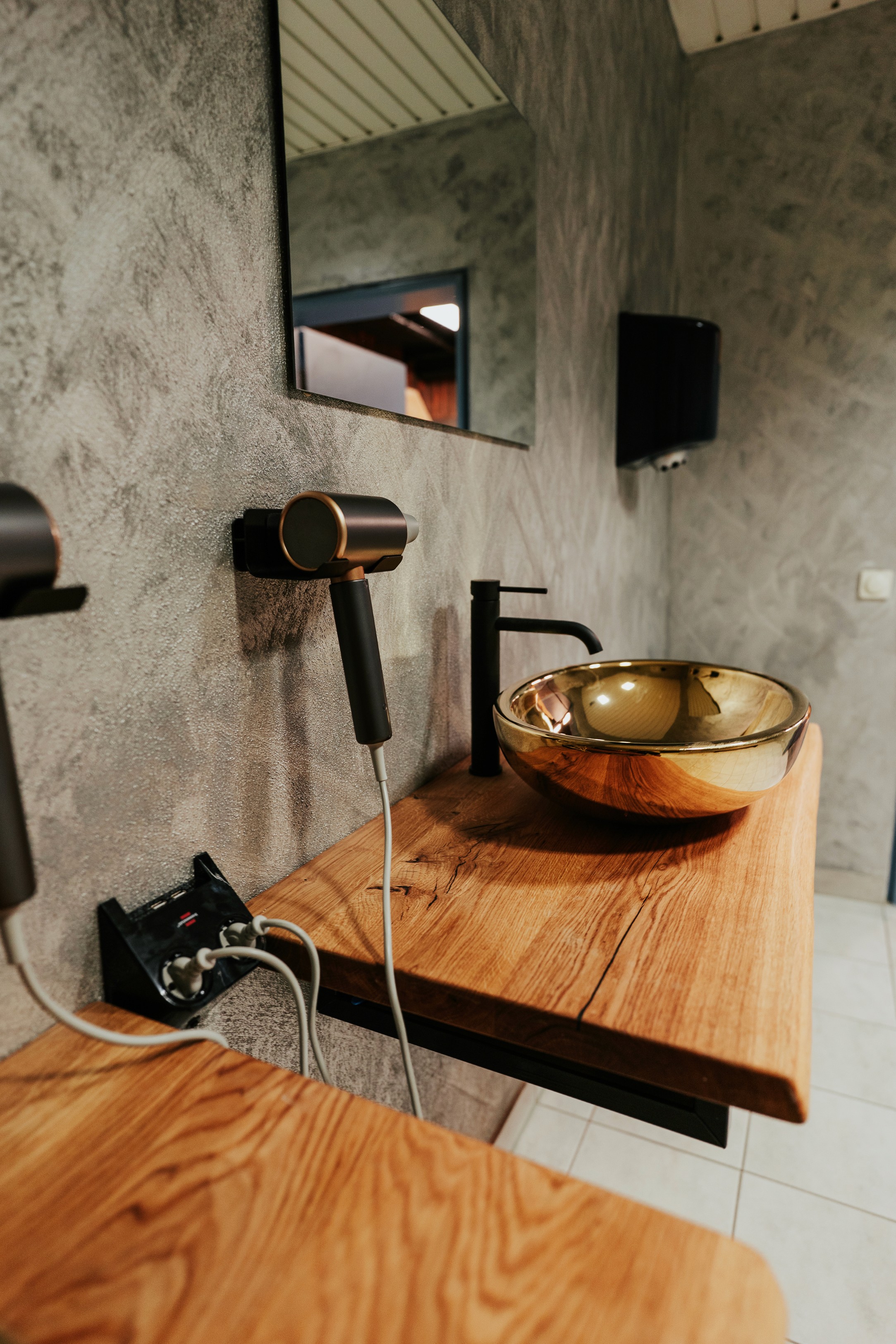 Sauber und modern, mit Waschbecken und Haartrocknern für deinen Komfort ausgestattet.